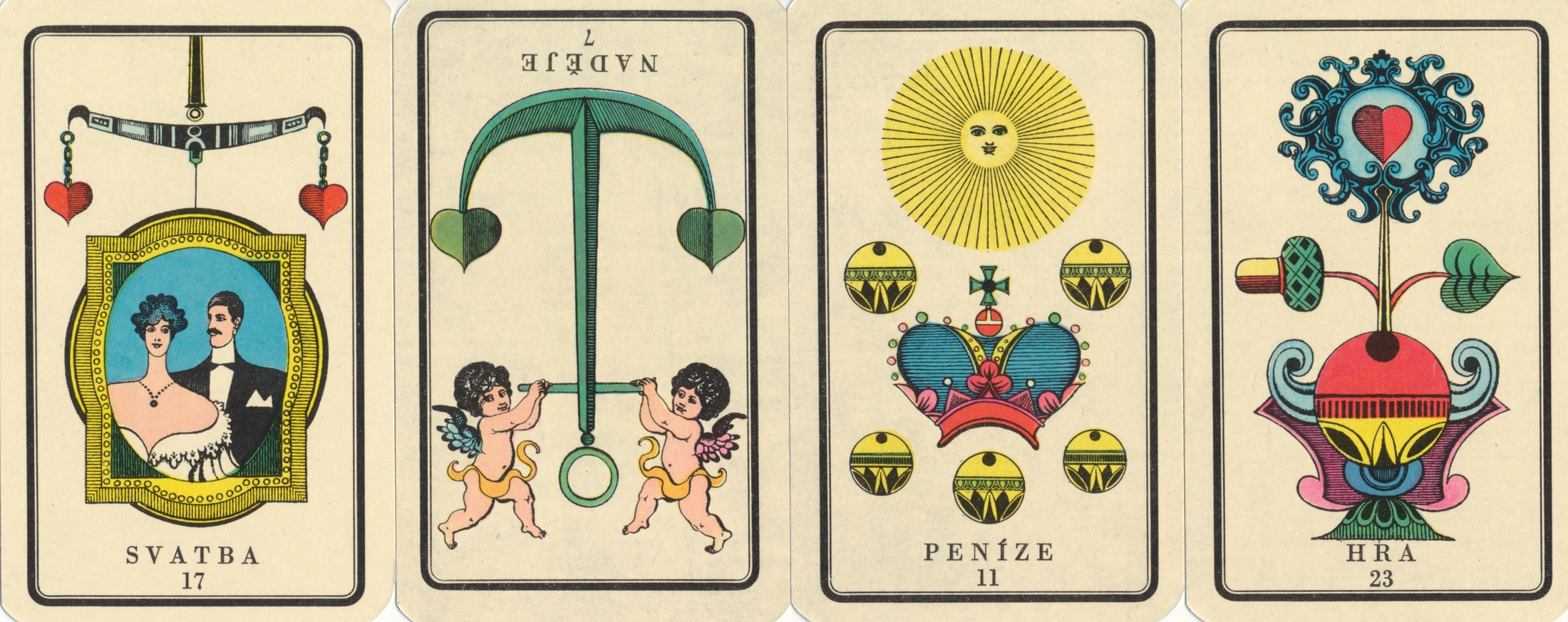 Das ist ein Einfachbild mit Hochzeitsmotiven, Mariášové karty